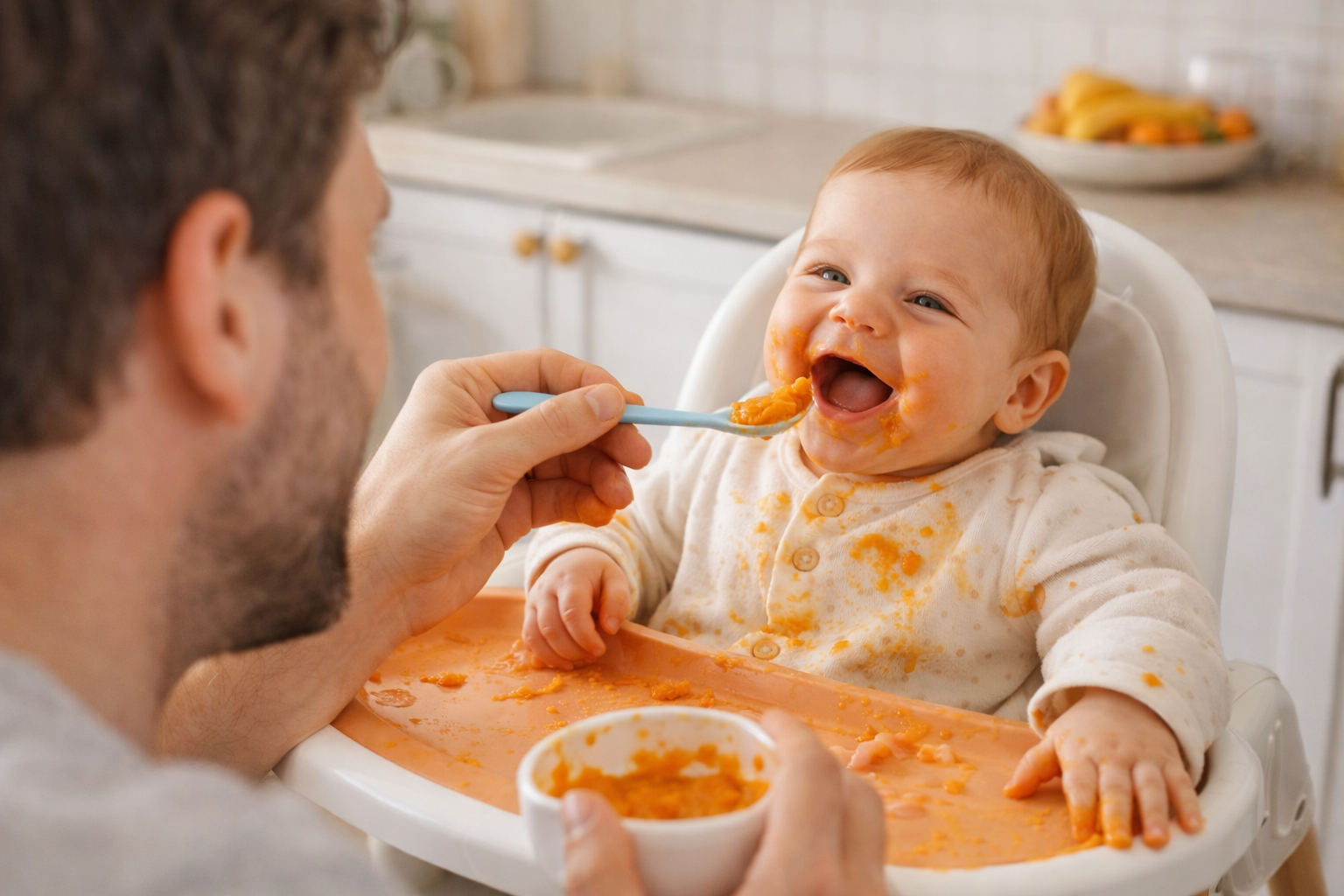 Eerste hapje pompoen vandaag. Het ging overal heen, maar ze vond het heerlijk.